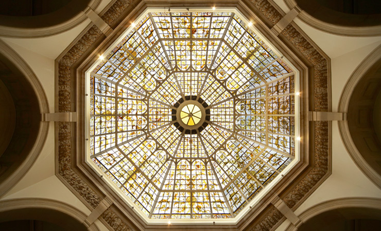 Phase 2 works involved the refurbishment of the ‘Municipal’ end of the building, converting council chambers, meeting rooms, clerks' offices, etc. into flexible performance spaces. During this project, the Grand Hall was destroyed by a devastating fire in March 2015. The external envelope and roof of the hall have been rebuilt to match the original design, whilst internally those elements that survived were preserved, with features of the lost fabric being reinterpreted, such as a new timber lattice ceiling reflecting the original decorative plaster ceiling but providing space for adjustable acoustics, ventilation systems and stage lighting and engineering. The Architects’ Journal described the work as ‘a renovation that looks to the future while respecting a much-loved past’ (22 November 2018).