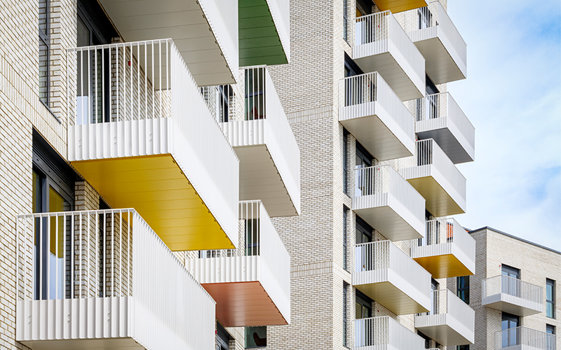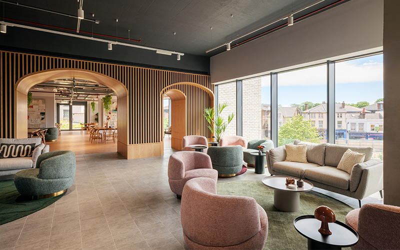 One Maidenhead met close to Passivhaus fabric standards, with an excellent airtightness further enhanced by façades incorporating solar control in the form of deep reveals, and solar control glazing. These features contributed to low heating needs, allowing for an all-electric scheme. During winter, electric heaters provide warmth, while in summer, a Mechanical Ventilation with Heat Recovery (MVHR) system maintains comfortable indoor temperatures by drawing in fresh air from strategic openings.