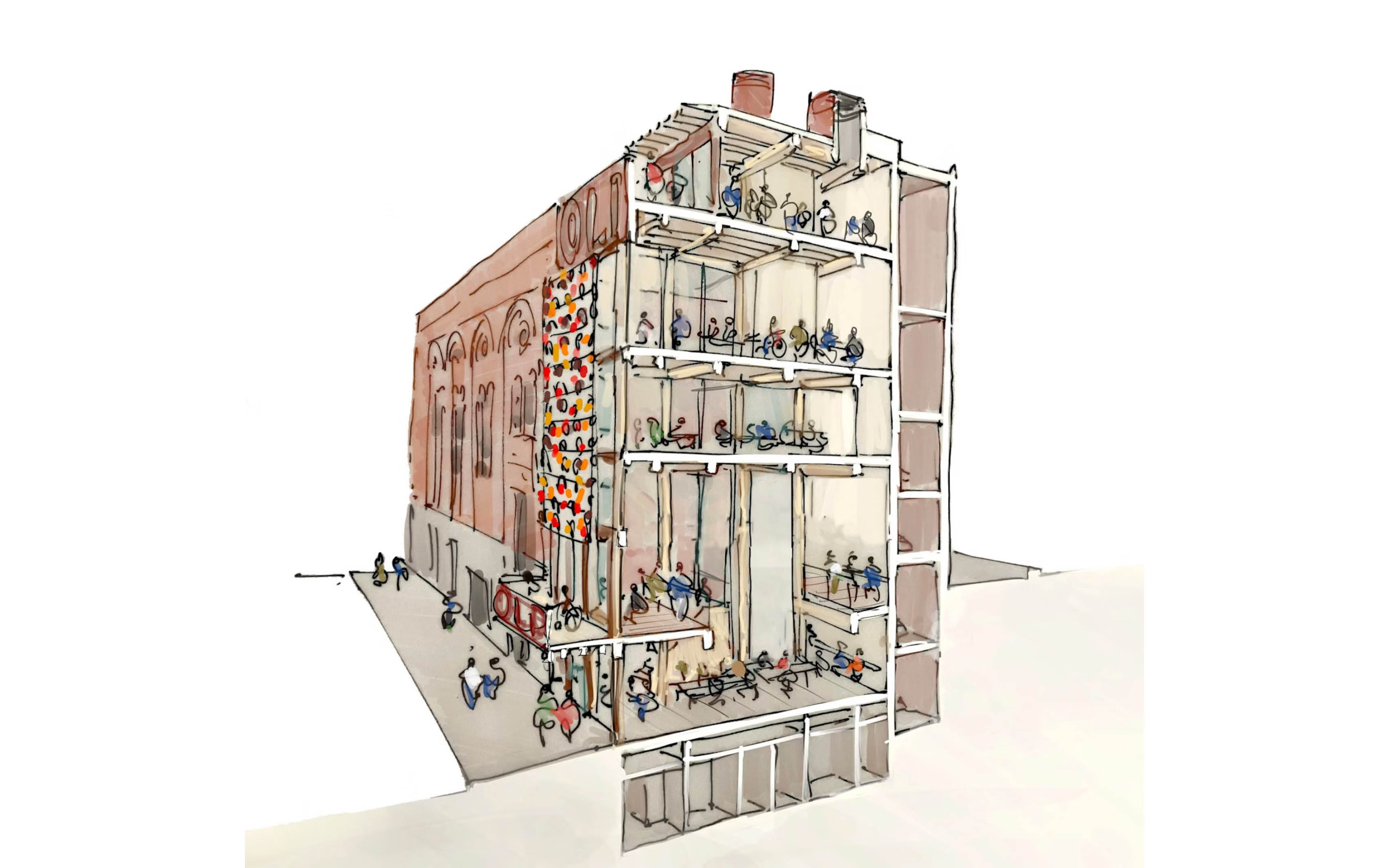 The Old Vic Theatre is located on Waterloo Road in London. New back-of-house facilities situated next to the theatre, now replace a former commercial restaurant. The project aimed to meet the client’s budget while delivering a bespoke, highly sustainable solution through excellent design and construction standards. The new annex features a triple-height street café, script library, writers' room, learning centre, green room, and rooftop event space.